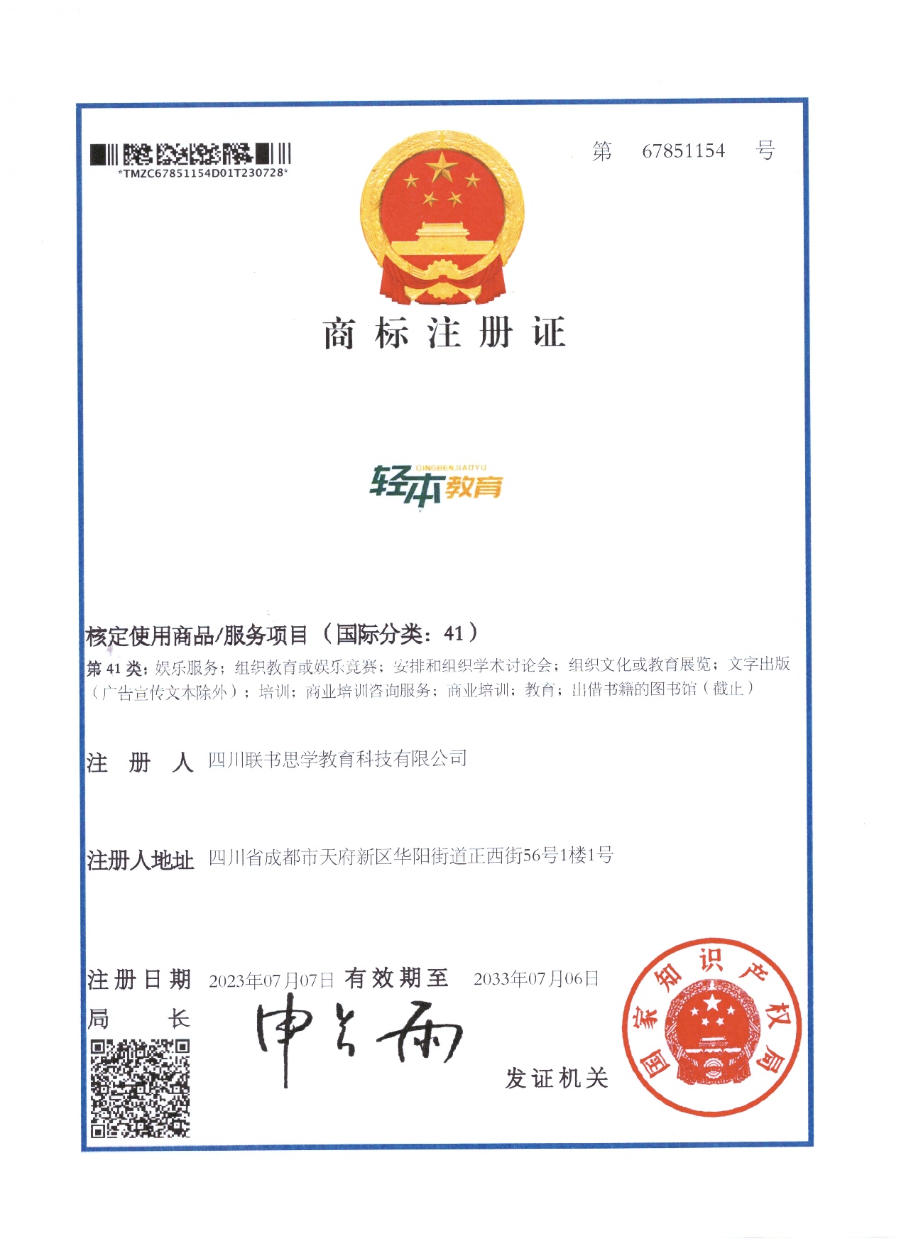 项(其中含轻本教育品牌商标);